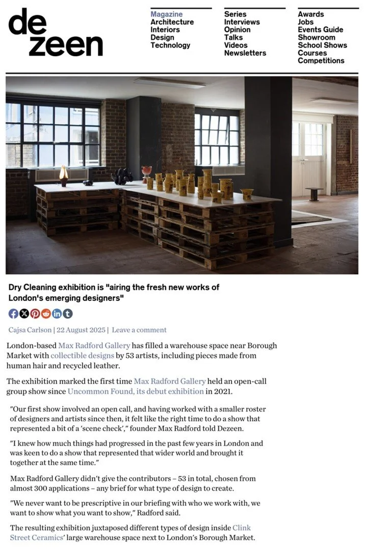 The involvement of Clink Street Ceramics, a London pottery studio that also puts on ceramic art displays, opened up Max Radford Gallery to a design niche that the gallery hasn't covered as much in the past.